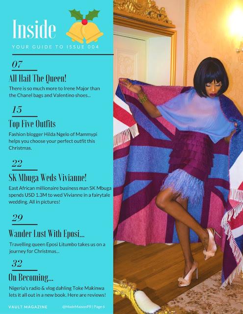 It has chair gripping stories on fashion trends for this season, highlights of Toke Makinwa's book and more lifestyle bits and tips! It also features AFRIMA nominee; Montess.
